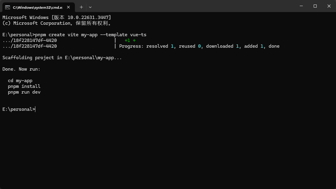 pnpm create vite my-app --template vue-tsnpm create vite my-app -- --template vue-tsyarn create vite my-app -- --template vue-ts