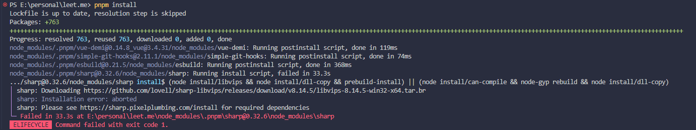 node_modules/.pnpm/sharp@0.32.6/node_modules/sharp: Running install script, failed in 11.6s